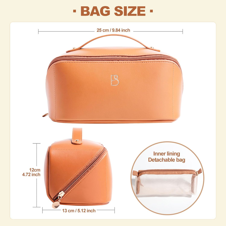 The color of the cosmetic bag should also be consistent with the product features and efficacy. For example, if your product is a skin care product designed to relieve fatigue, it may be more appropriate to choose a color with a sense of tranquility and relaxation, such as green or blue. If your product is a cosmetic that emphasizes vitality and youth, bright colors such as red and orange may be more suitable. Conveying product features and efficacy through the color of the cosmetic bag will help consumers understand your product faster and generate a desire to buy